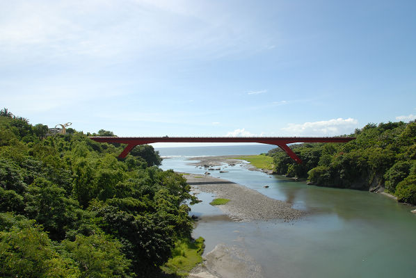 東河新橋造型簡潔,橋身採用阿美族人喜愛的艷紅色,